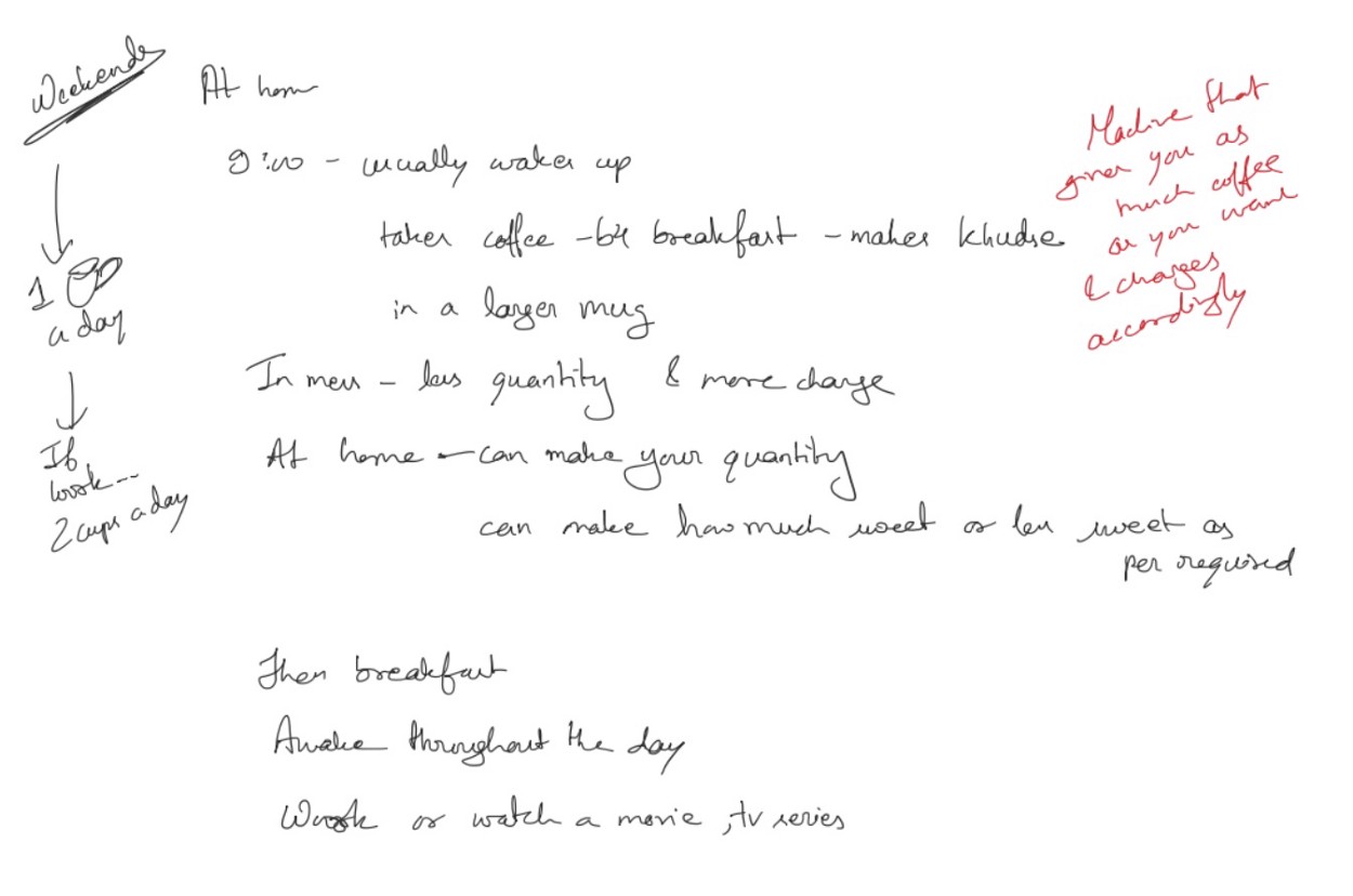 This conversation was used as a base to mind map Niharika’s coffee drinking experience. Here is how a interview with her on her favourite subject looks like: