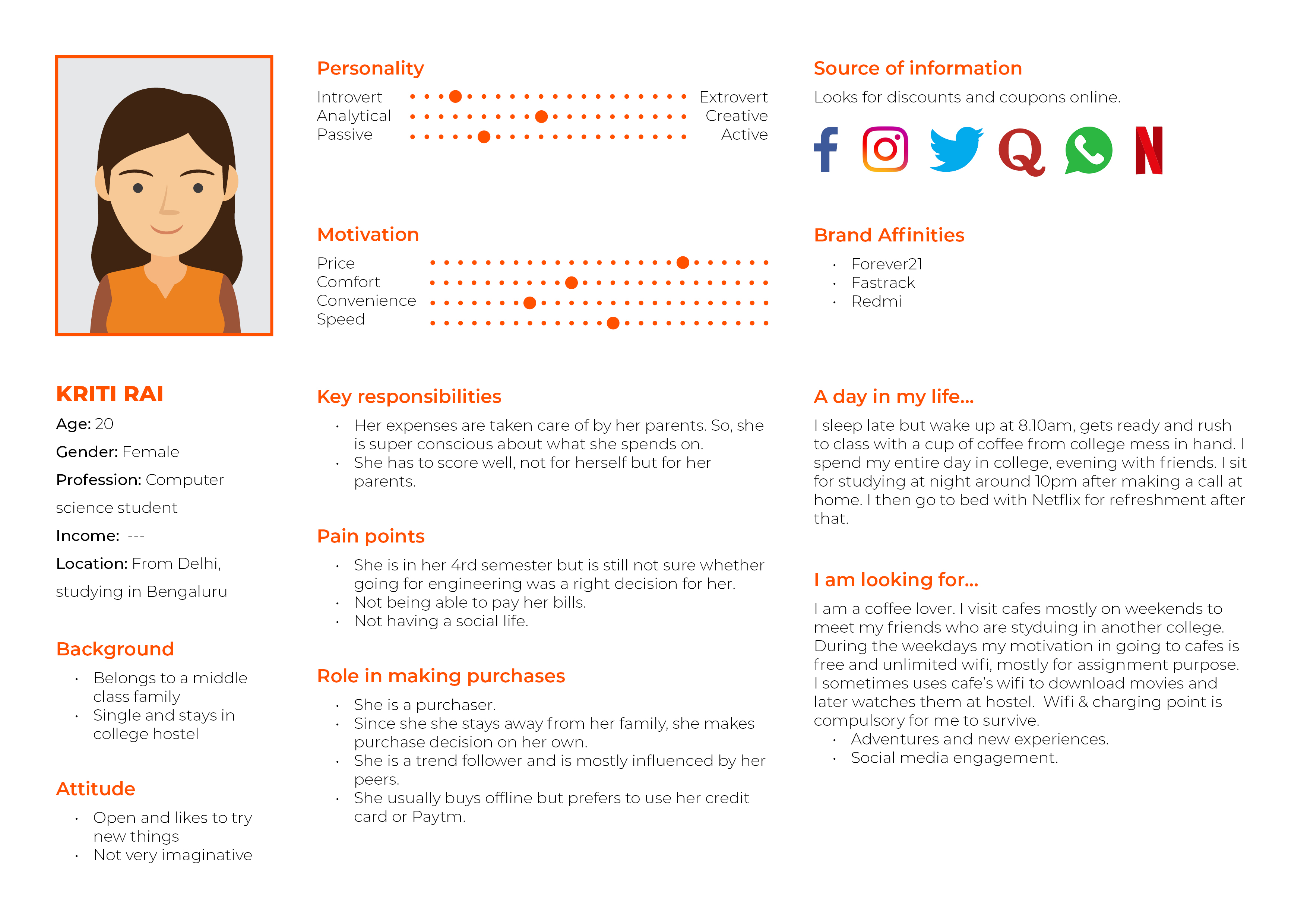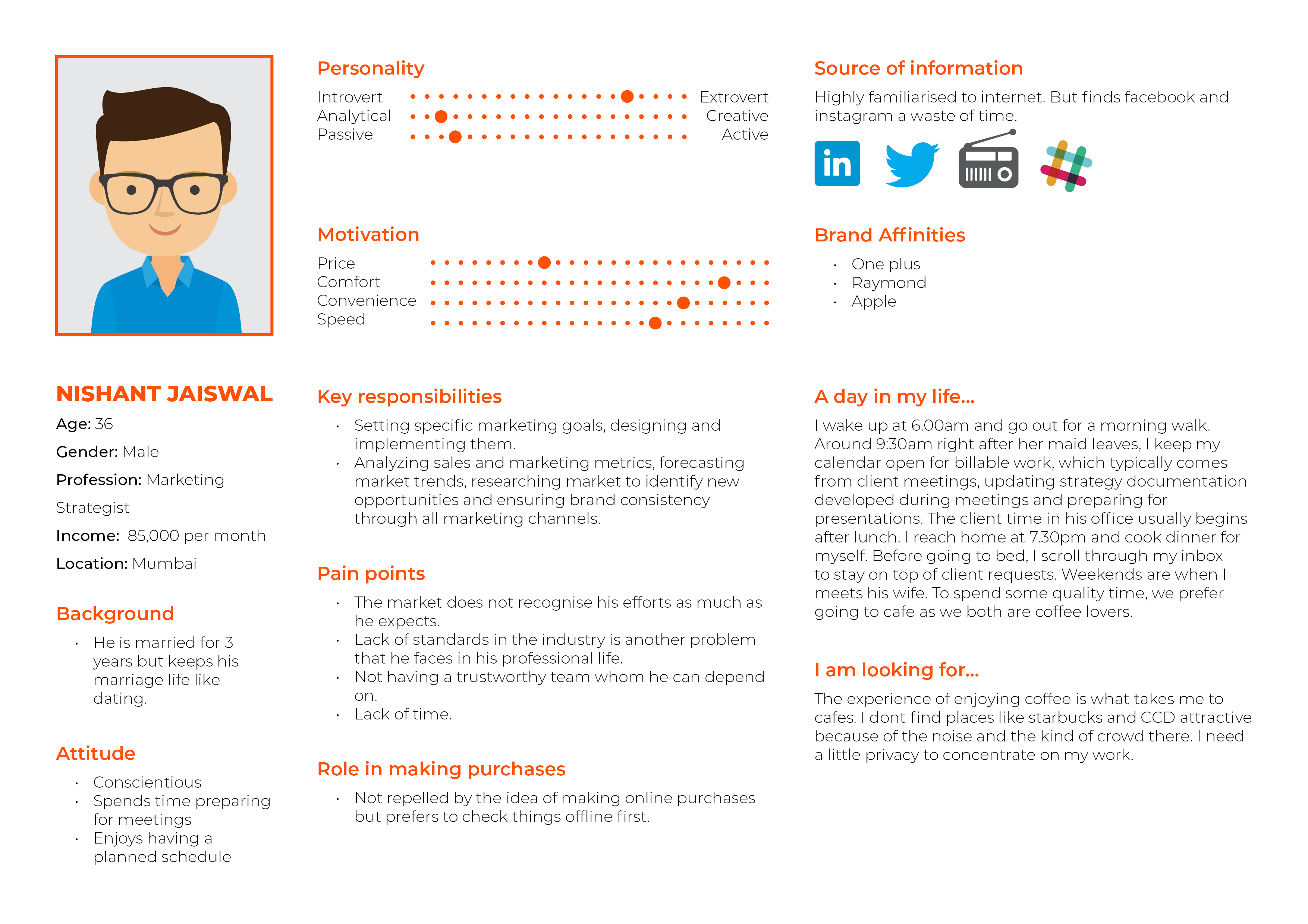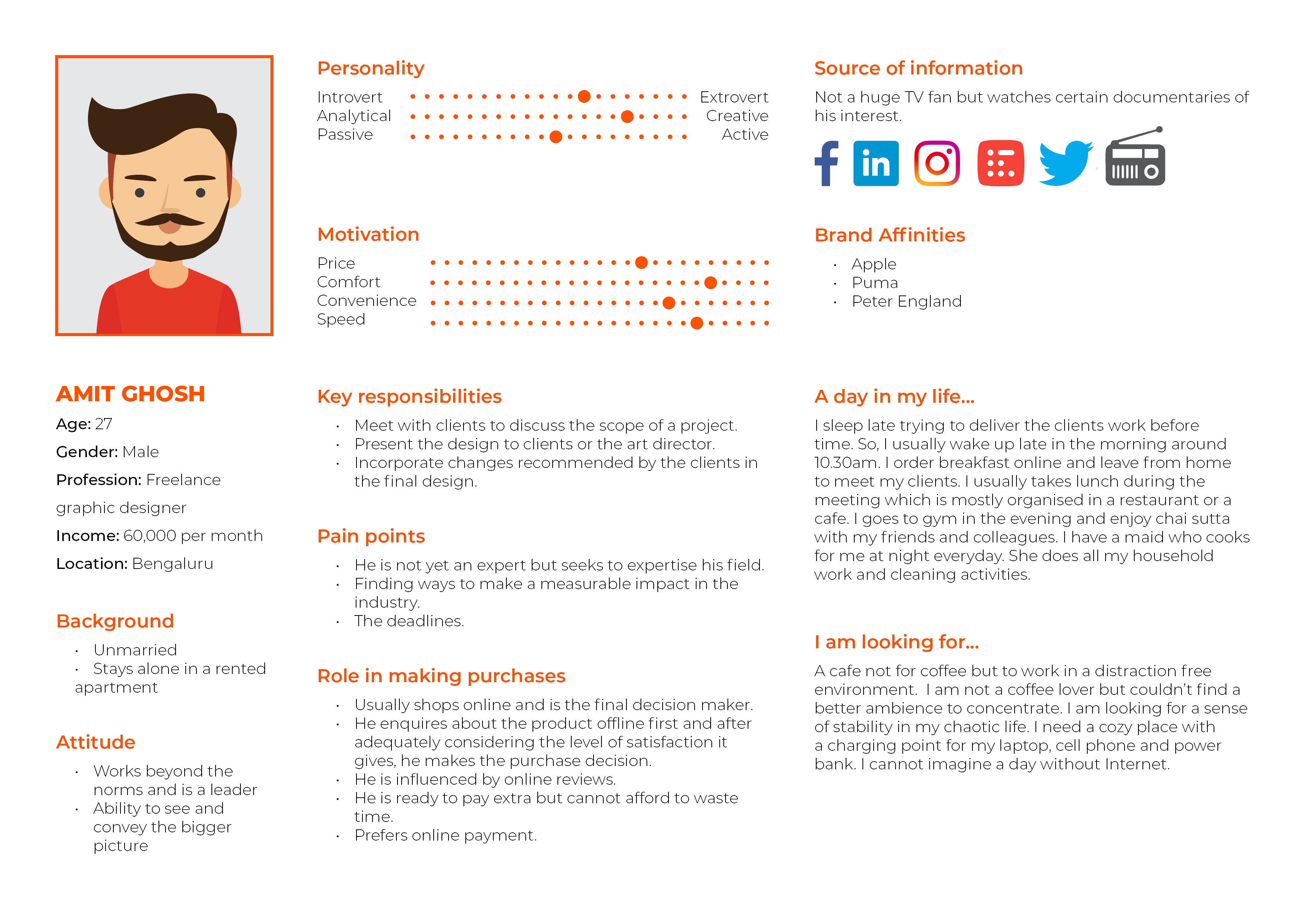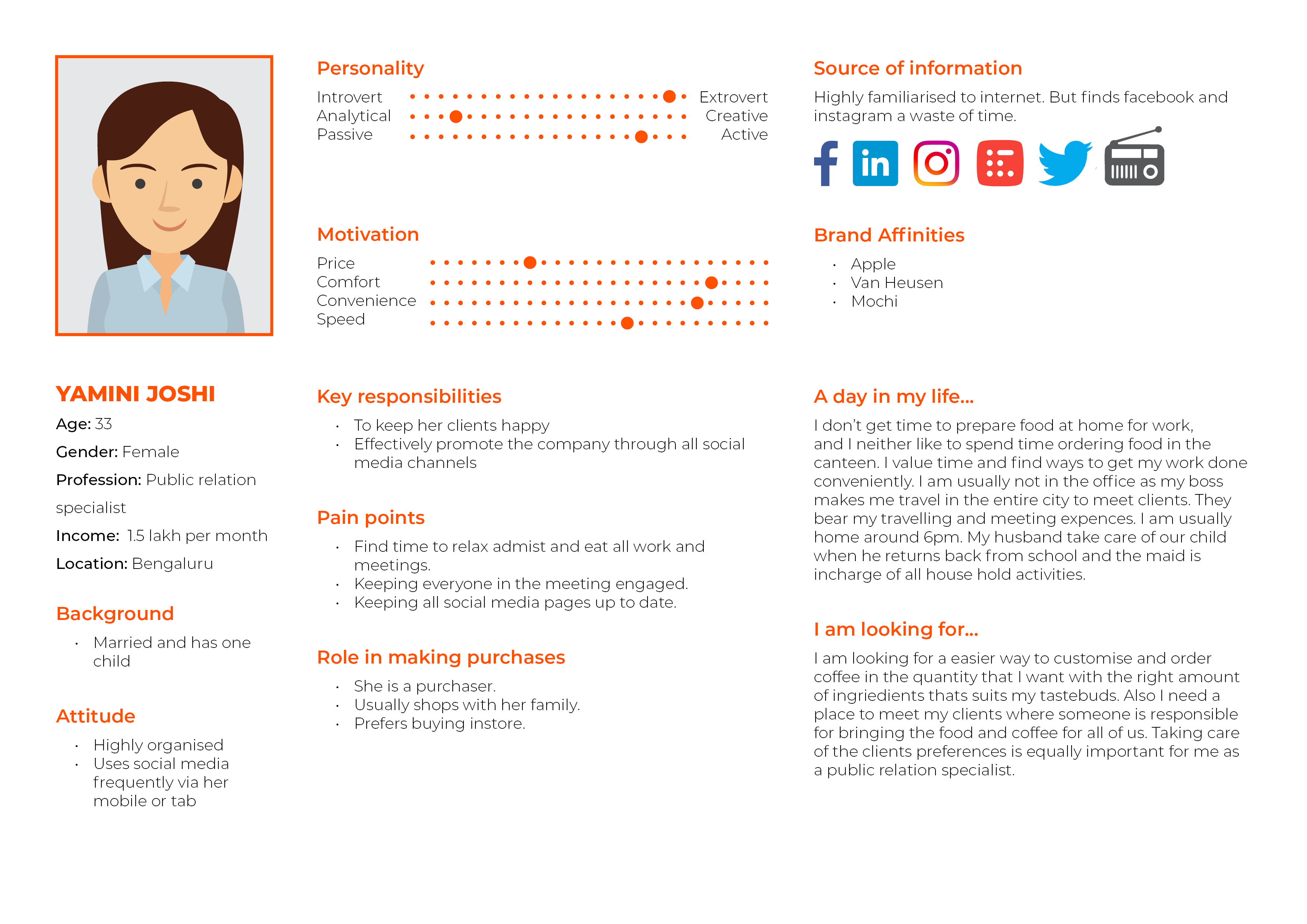These coffee lover personas were framed out of user research and includes the needs, goals and observed behavior patterns of the coffee lovers. Find the research insights in the link mentioned below: